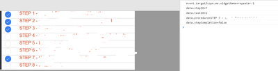 I bind the data.stepCompletion from repeater to the checkbox and data.procedure to the label.