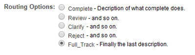 I would like to modify the text of the Routing Options radio buttons to give the user more information about what each option actually does. I have put the information above in the "instructions" area (as seen below), but typically people don't read it. 😀