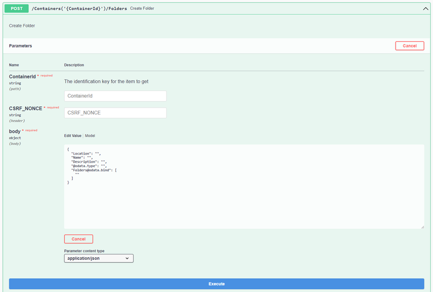 can anybody have a hint of what am I doing wrong? I am trying to create subfolder in the Windchill, using Postman application but all I got is the message "The syntax of the JSON document is not valid.".