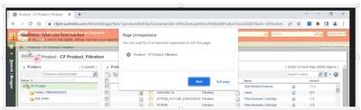 Windchill container folders page gets stuck/unresponsive and does not allow user to proceed further.