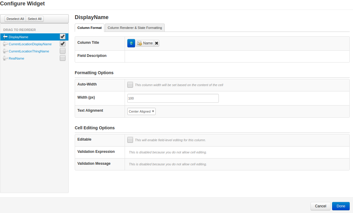 You can then configure the grid widget to show the columns of data you are interested in.