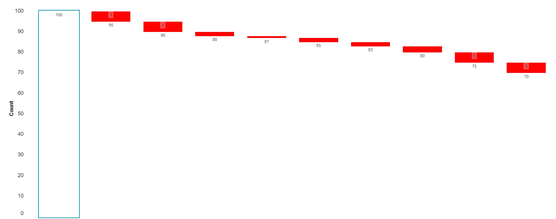 I set the series with the NumericEntry values as white and the difference between the entries (consecutive rows) red to make them "float" in the chart to simulate the waterfall effect.