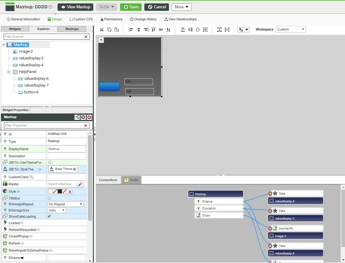 I have created a static mashup and where I have an image and two value display widgets. On that mashup, I have placed a panel widget so my image and value widgets went behind the panel. No on the panel I've placed another two value display widgets. See the attachment for better understanding and all the widgets (one image and four value display widgets) are getting data from an infotable.