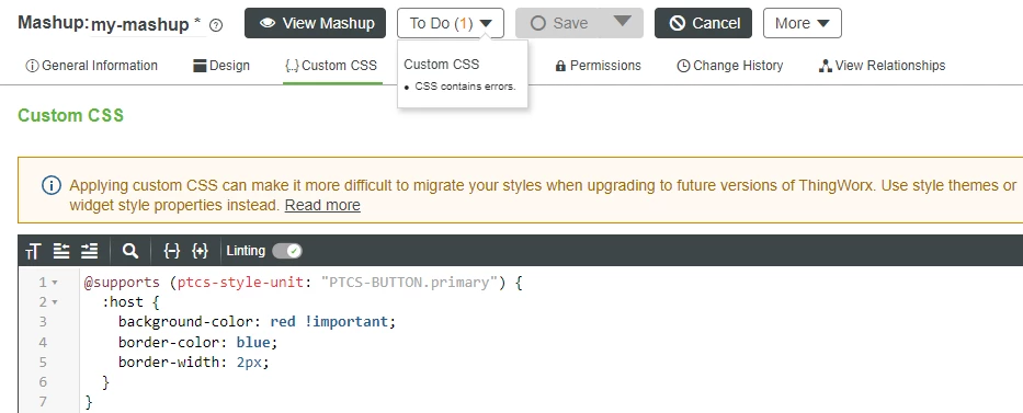 I'm trying to follow the new custom CSS syntax for Part