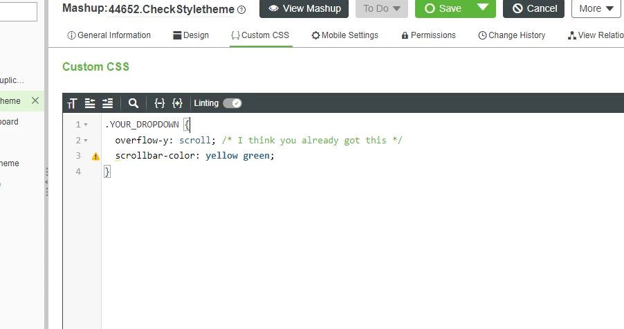 NNP_101496719-GraniteForum|Forum|3 years agoOctober 25, 2022QuestionDropdown ColorForum|Forum|3 years agoOctober 25, 20223 replies3458 viewsHey @krishnakomal , Do you know how to change the color of dropdown scrollbar by using CSS? Here I attach SS. Please help me in this. Thanks.Mashup-Widget