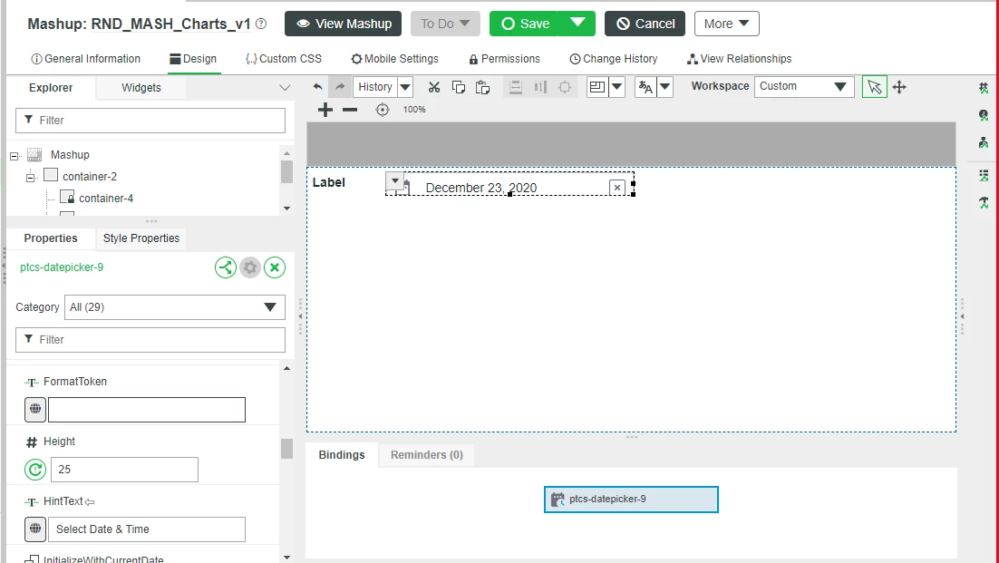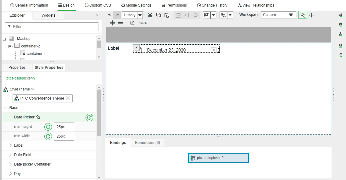 I need to control the height in the ptcs-datapicker widget in Thingworx 9.0.