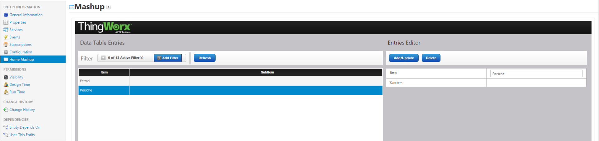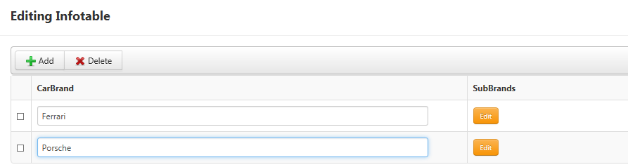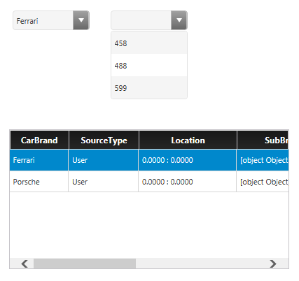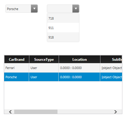 The first list-widget has two elements, for example: Ferrari and Porsche