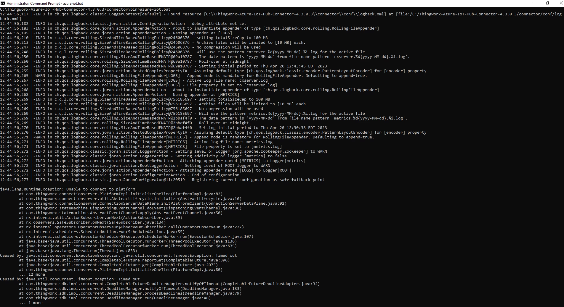 I also notice that azure.iot.conf (below) has just 3 properties but article has 10. I dont know from where read value for "hub-thing-name". When I run "azure-iot.bat" I get "java.lang.RuntimeException: Unable to connect to platform" error.