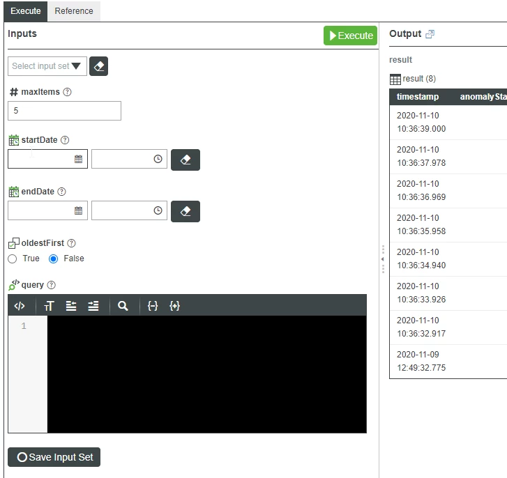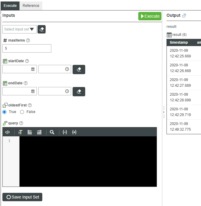 Now when I open the mashup, the data is loaded and shown properly and is also refreshing and adding the latest data each second. The problem is, that the X-Axis is way to widely scaled for the data points shown (see screenshot). My expectation would be that the X-Axis is limited to something like minimum timestamp in the data query to maximum timestamp in the query (and the window moves with the data). How can I achieve this?