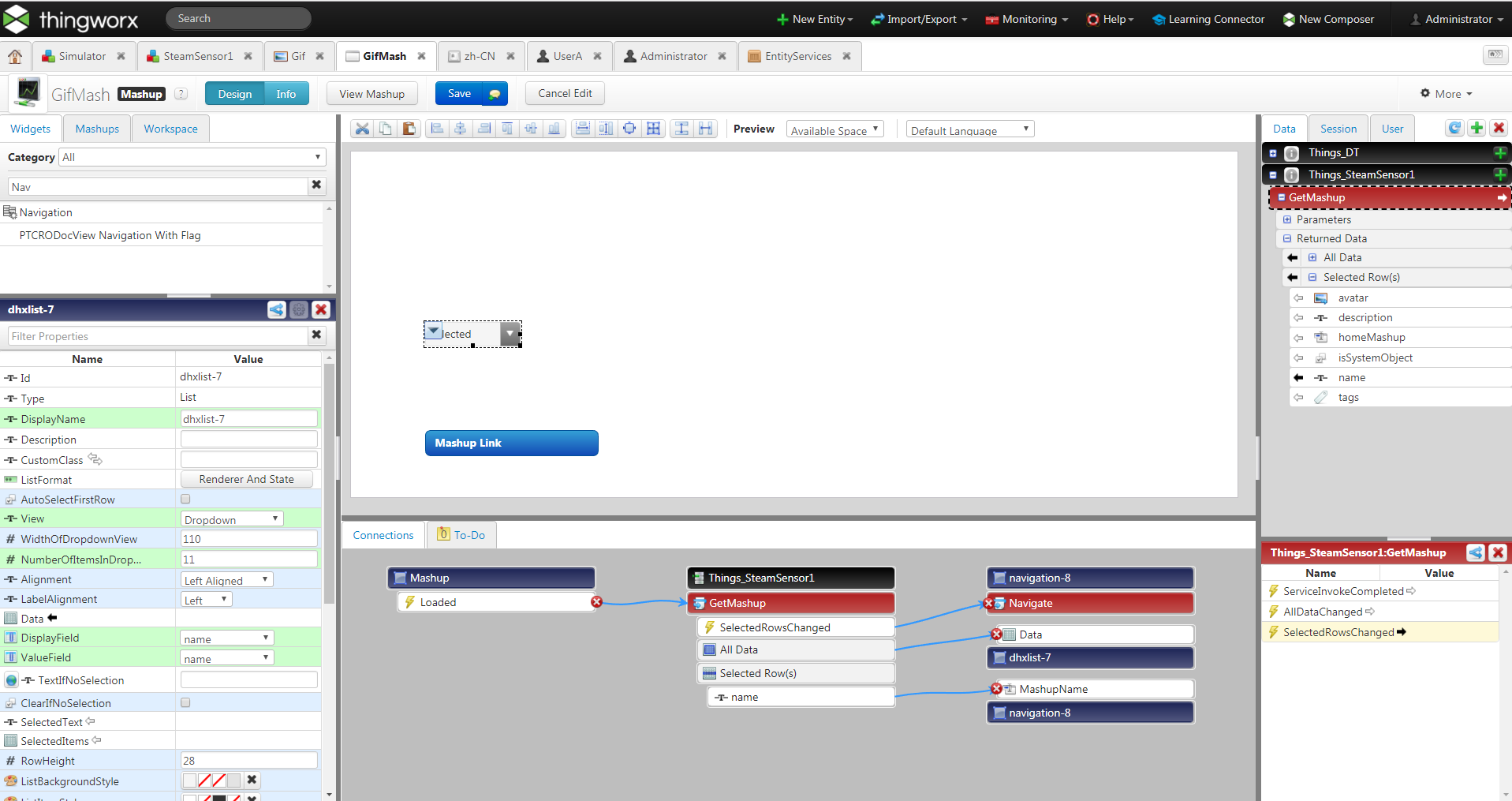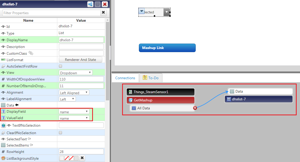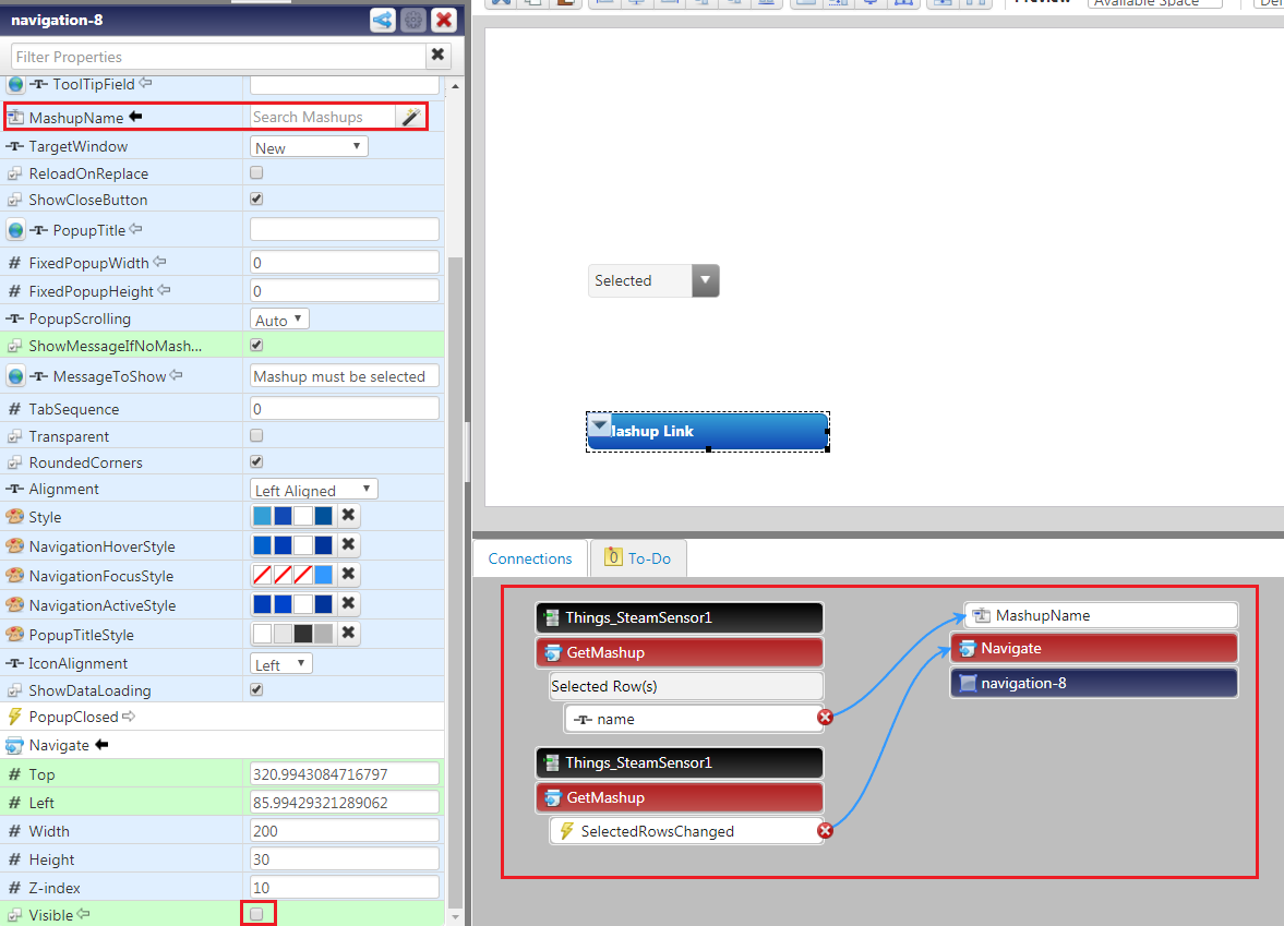 I want to have an infotable property filled with strings placed into a dropdown list and assign each individual row in the list to a navigation button to connect to wen clicked.
