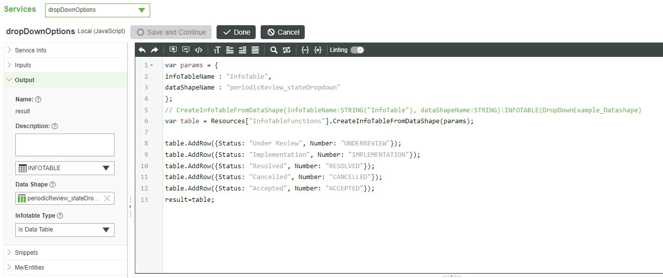 I am creating a mashup with a dropdown widget that is supposed to filter the rows of my grid widget by their "state". When I used a regular dropdown, it was working perfectly and the table only showed the results I wanted.