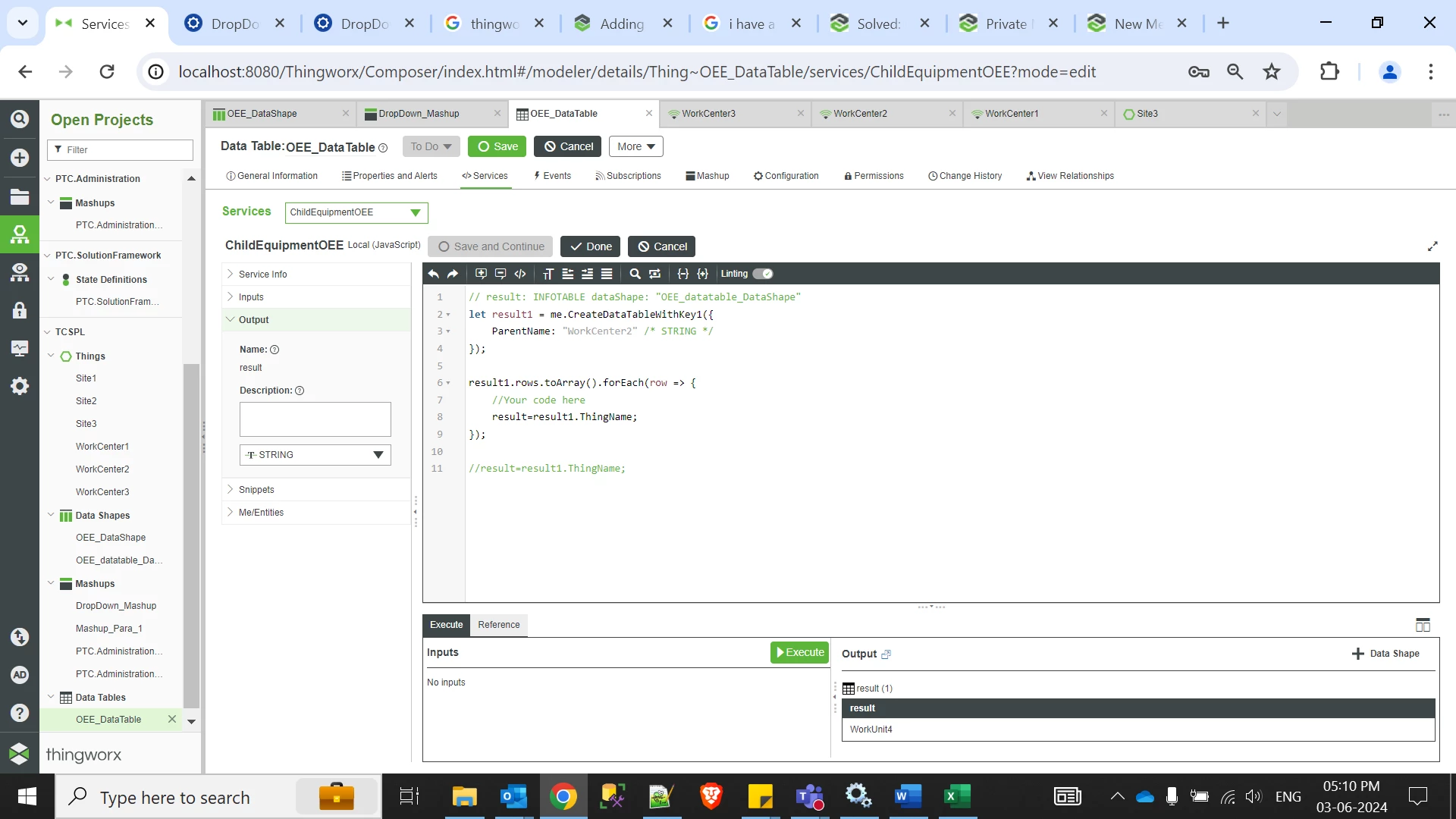 I have a service which takes a input in string (it is basically a parent equipment name) in the output I am getting an infotable I want to print all assets under that parent. I am to do that but only first equipment is getting printed.