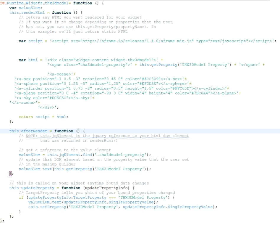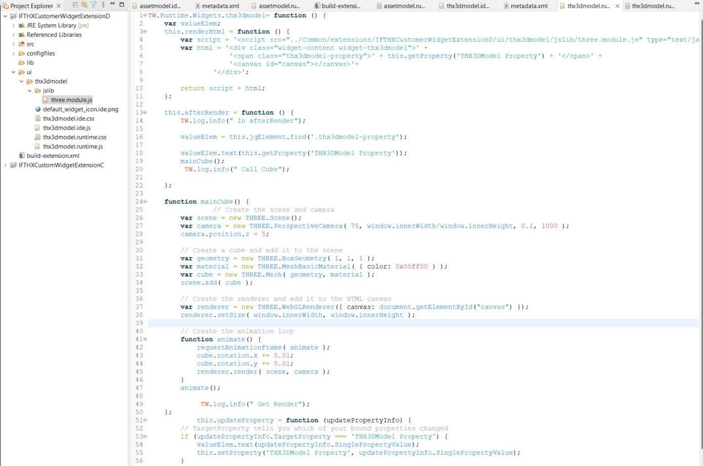 I am trying to create 3D model using A-frame or Three.js. I have tried implementing simple Aframe / three.js model but nothing displays on the Mashup at runtime. I have tried Aframe / three.js webjars, their module files and cdn i have tried both using Script tag and in metadata.xml. What would be the problem here?