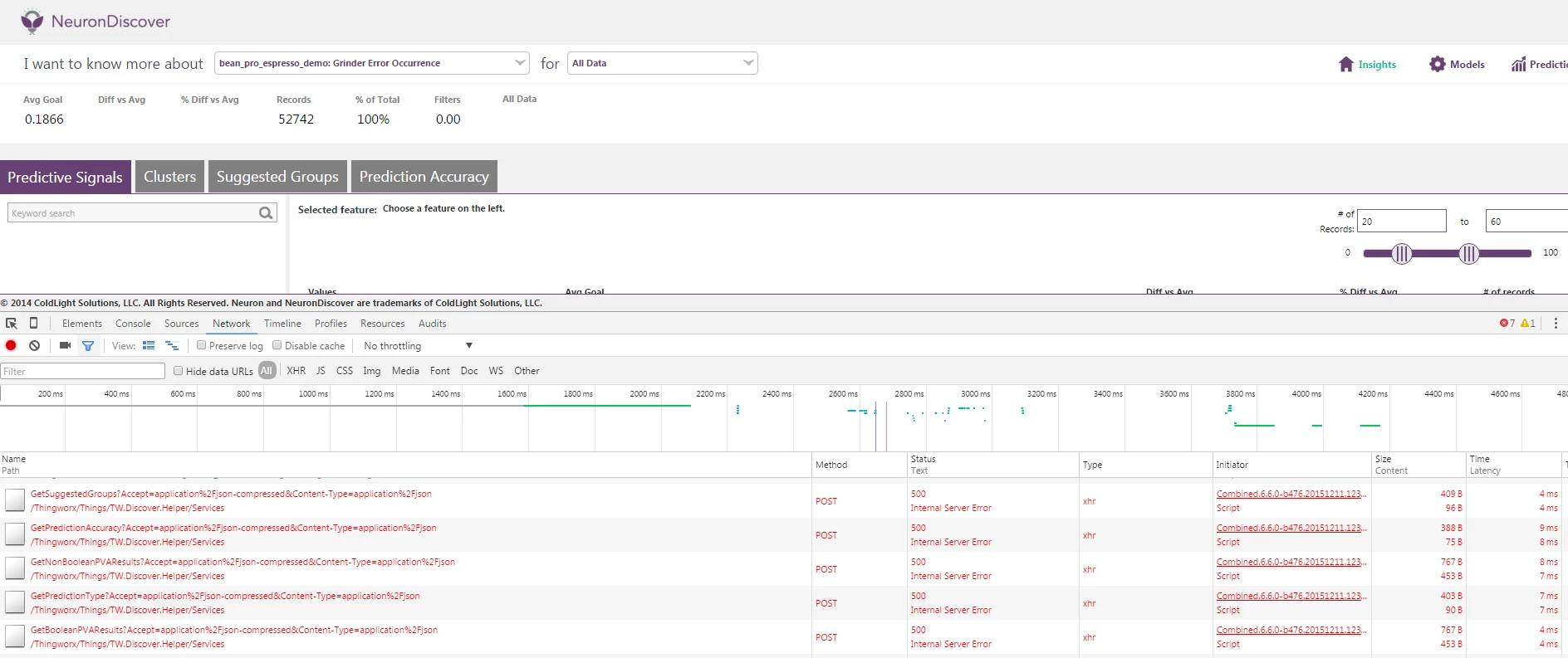 Thingworx Machine Learning: Unable to view bean pro demo data in Discover extension