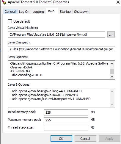 "-Djava.library.path="C:\Program Files (x86)\Apache Software Foundation\Tomcat 9.0\webapps\Thingworx\WEB-INF\extensions""