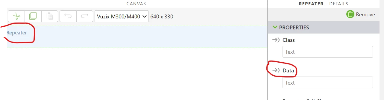 Access "Data" attribute of the "REPEATER" widget