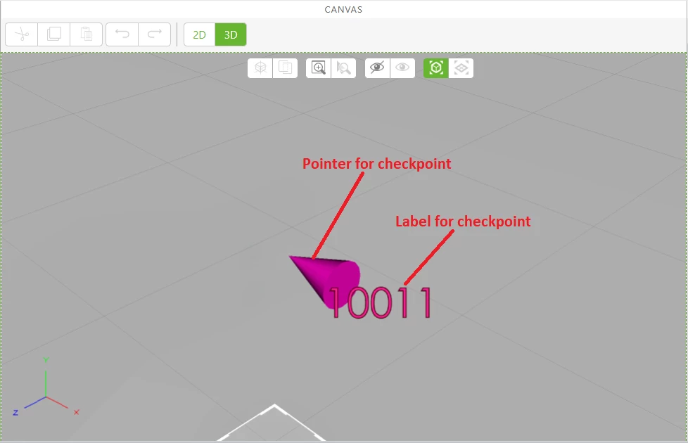 We have coordinates of each checkpoints. So, to insert checkpoints we have to manually add 3d widget & enter its x,yz co ordinates similarly we have to do it for its label.