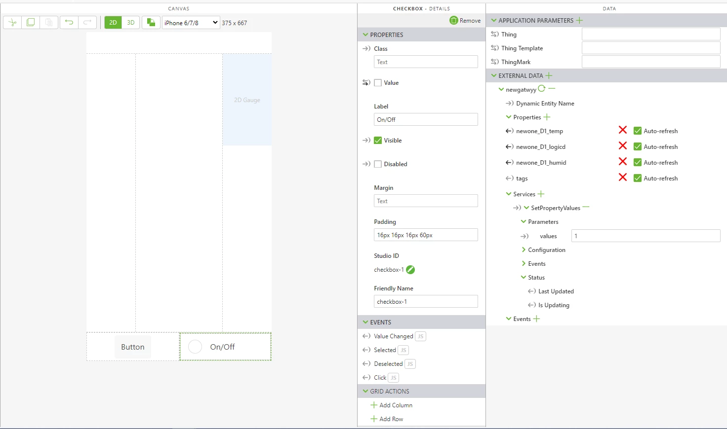 Hi i have interfaced the led with the thingworx and i'm using its prop in vuforia studio for the temp and humid values. I have the values but, i'm not able to switch on/off the led from vuforia studio.