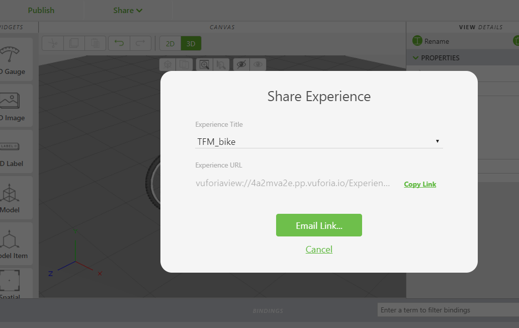 Hello I just upgraded thingWorx but after published I am not able to share it. Actually when I clicked on share after that two options are coming then when I clicked on any one of those option then nothing is happened.