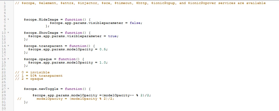 Attached is my code, the first four functions are for buttons that hide, show, 50% transparency, return to opaque (0% transparency). The newToggle function at the bottom is my attempt that does not work to perform this 3-mode toggle function with a standard button.