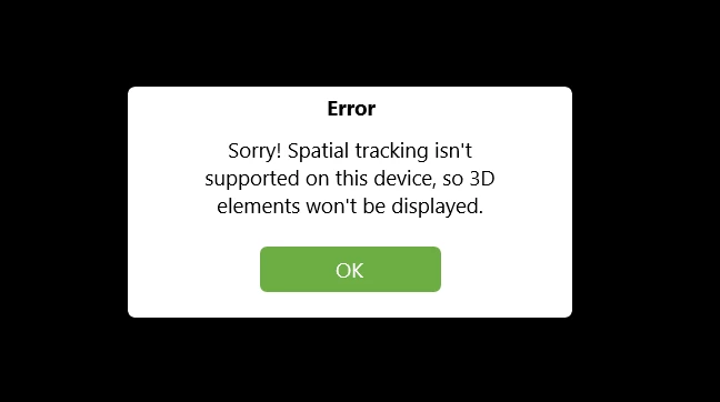 I clicked on the link to view the experience and it asked for Horizontal or Vertical surface,when i select the corresponding one,the window is popping up as "Sorry! Spatial tracking isn't supported on this device,so 3D elements wont be displayed."