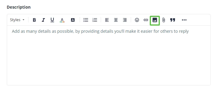 - You will need to click on the image icon in the Description box and choose the picture from your files.