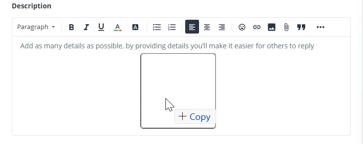 - You can drag and drop or copy and paste the image from your files in the Description Box.