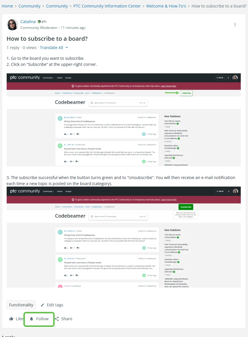 1. The post is successfully subscribed when button turns to “Unfollow”.
