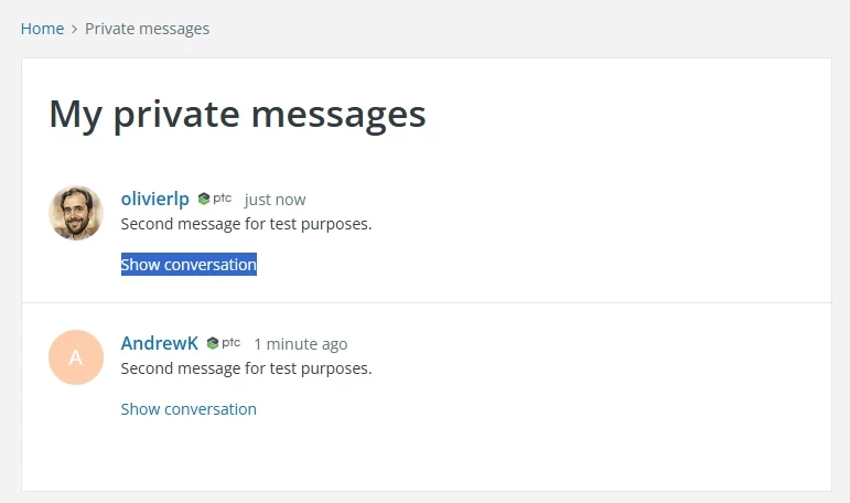 The private messenger feature displays messages in a threaded view. Click on “Show conversation” on any conversation in your inbox to read through an entire conversation.