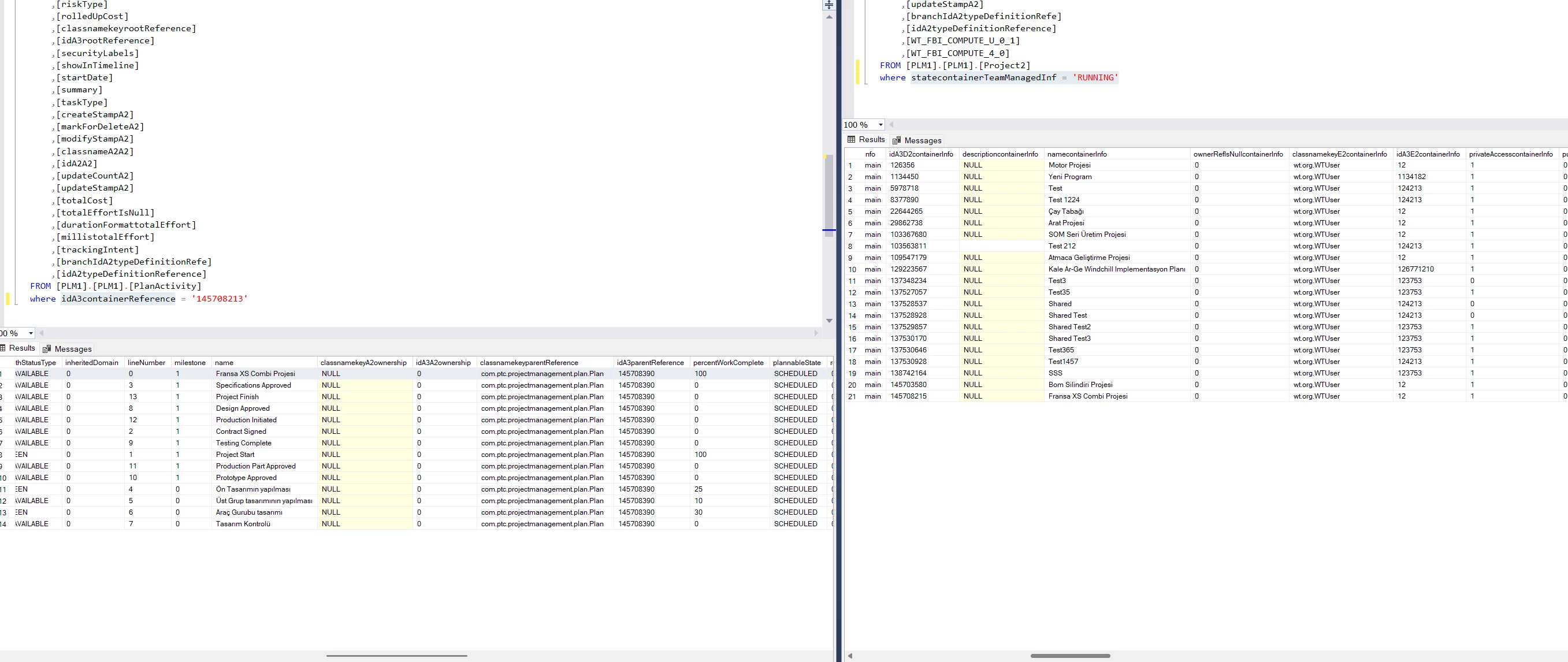 I'm currently trying to analyze the "Recent Projects" section in Windchill using SQL queries. So far, I’ve identified the Project2 and PlanActivity tables. However, I’ve encountered some inconsistencies: