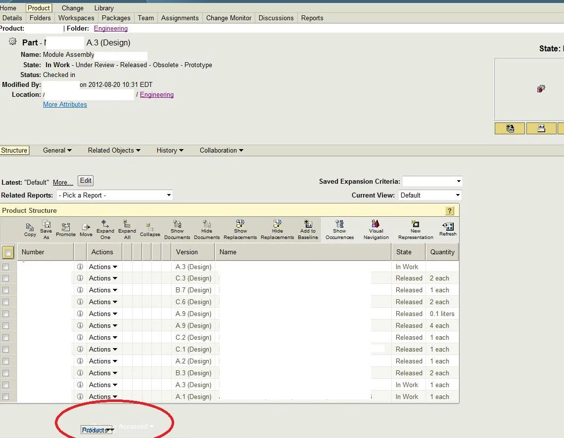 Thanks for the reply David, I didn't think to try on another computer. I did try different web browsers (chrome and firefox) and unfortunately the table on the lower half of the page never populates in either of these browsers. At least, this happens for me anyway, I don't know if that's typical but I've read of others having issues with running Windchill in Firefox and Chrome. As a result, I didn't think it would be an "apples to apples" test if other things don't work right anyway. Other users do not get that behavior which is what led me to think it might have been something I downloaded/installed that did it.