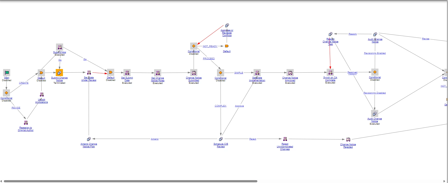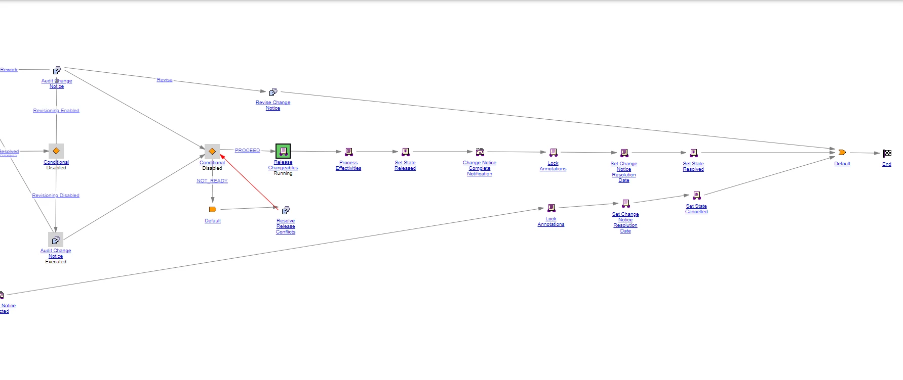 A Change notice is stuck at 'release changeable' . The 'Audit Change Notice' is already completed. But the documents in the resulting objects state is not yet changed. The change notice is still running.