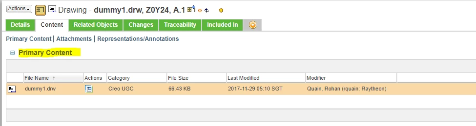 Is it possible to replace the primary content of a creo drawing object with another .drw file? We have drawing objects which just contain a pdf in WC11 but need the primary content replaced with actual CAD data from WC10.
