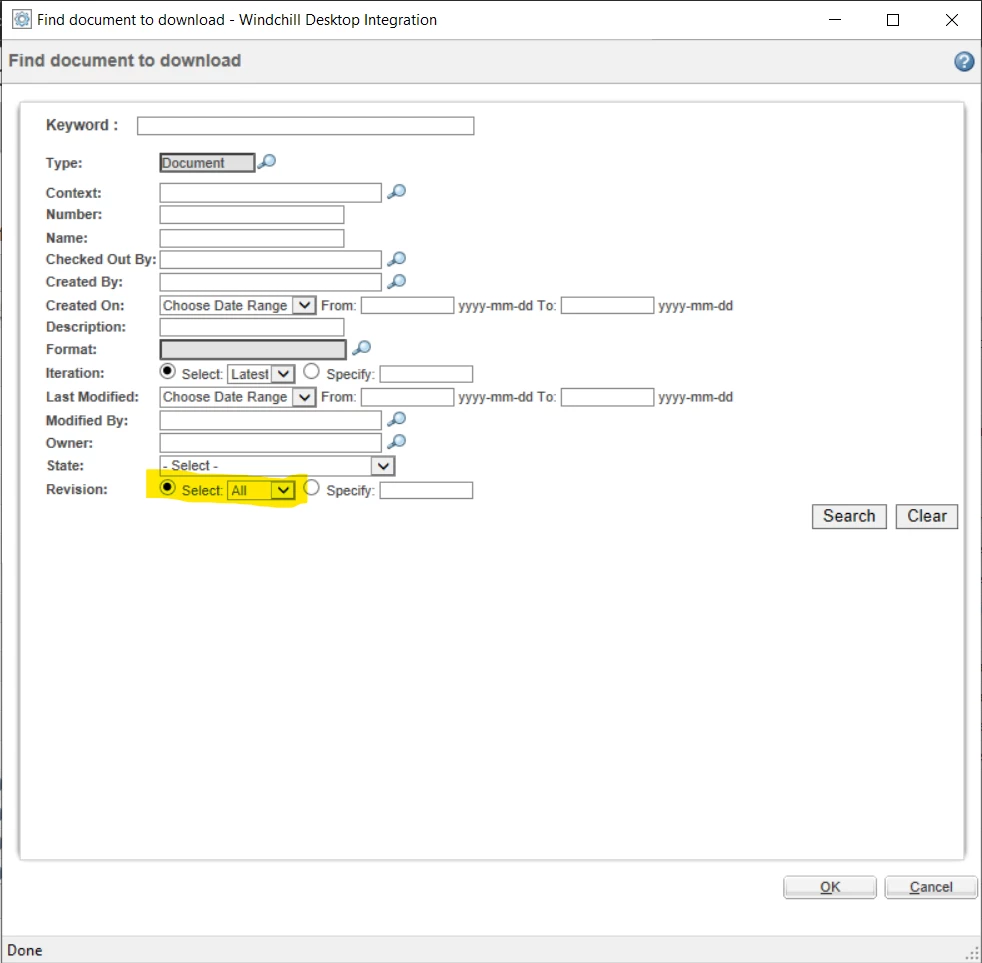 Use Case: Searching for the latest document in Windchill Desktop Integration in office