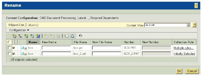I'm hoping someone can provide some insight on tying these two fields together during rename and save-as operations. In our case (and when new CAD objects are created) the 'number' parameter is always derived from the file name. I have attached a screenshot from PTC's documentation (titled Using Pro/Engineer Wildfire with Windchill) that shows what I would like--the 'new number' field is grayed out and I presume this is because it is inheriting the new number parameter from one of the other 2 fields.