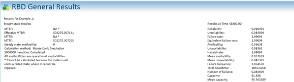 Hi all, this is my first experience with the software. I am currently learning the functions and utilities of the Windchill RBD. At the calculation page, I have been enabled Monte Carlo Simulation method. I am unable to achieve the simulated results. The results page display a message. I am able to obtain the failure rate for this example. It just unable to obtain the MTBF and MTTR of the overall system.