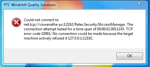 Vvc-21-VisitorForum|Forum|9 years agoJuly 13, 2016QuestionIn PTC Windchill Quality Solutions, we are getting TCP error code 10061. pls resolve the issue.Forum|Forum|9 years agoJuly 13, 20161 reply3260 viewsIn PTC Windchill Quality Solutions, we are getting TCP error code 10061. pls resolve the issue.Quality Mgmt