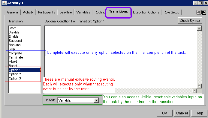 Can't do this in the workflow w/o code. Can add code to the Complete transition.