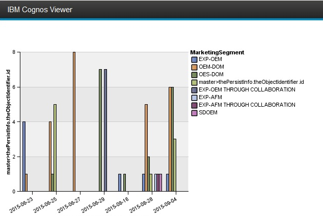 I need to create a chart in Cognos which should represents Month wise and quarter wise Marketing segments from the given dates. Actually, I've produced chart based on day wise through below expression for date parameter in Cognos report studio.