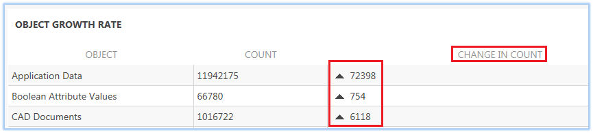 "The Change In Count specifies the different in the current and the previous data counts for the business object."
