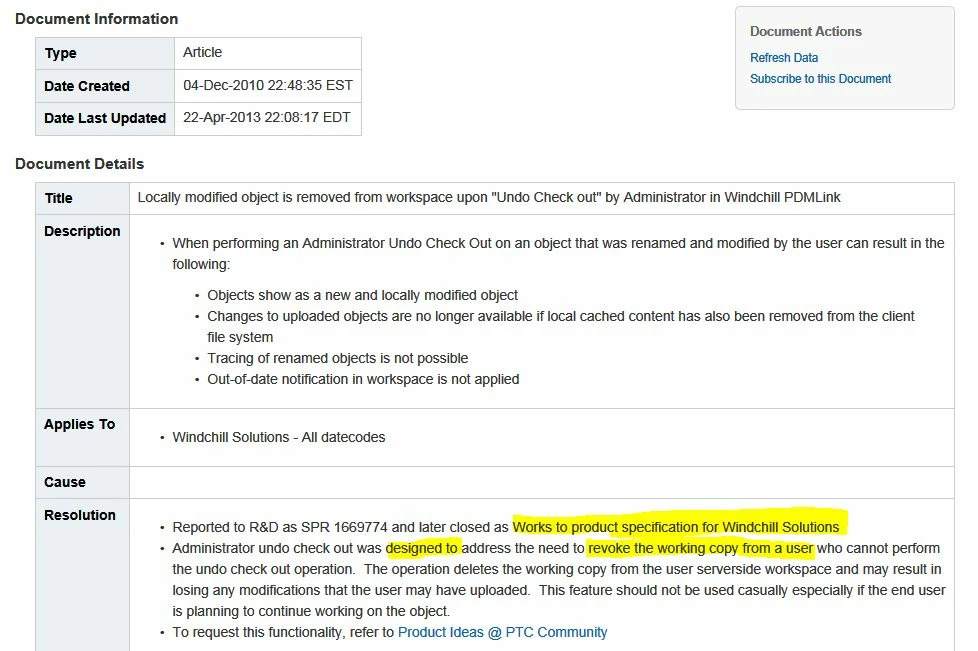 Has anyone else seen this? Am I misunderstanding what an admin "undo check out" should do? Shouldn't it just cancel the user's check out status and leave the file alone in their workspace?