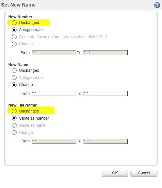 PDMlink: Force new number and new filename on save as or disable unchanged option.