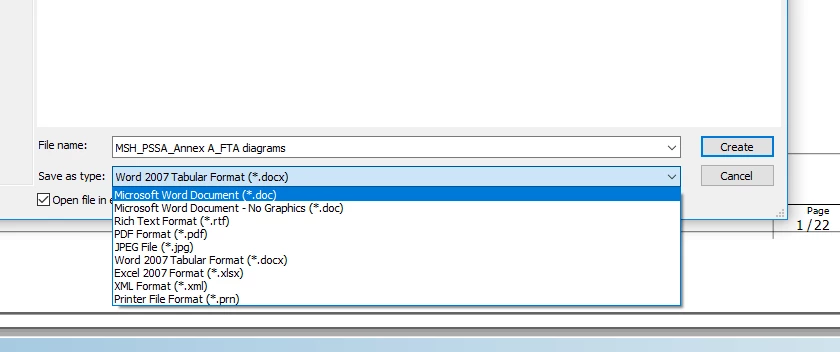 I am trying to figure out how to incorporate a FTA into a safety analysis I am making in a separated .doc file. I do not want to make it using screenshots or similar because I need the text within the tree to be searcheable once the analysis is saved in pdf. format.