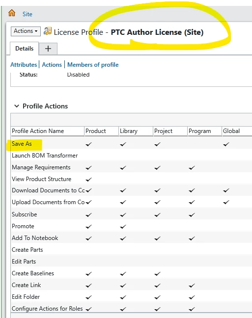 In the legacy licensing model Base, Advanced, Premium, the Windchill Save As action was included in Windchill Base.