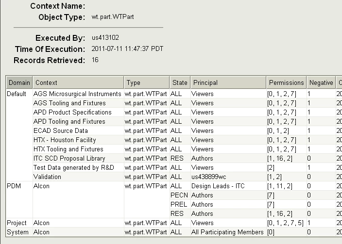 is there a way in PDMLink to pull out the overall access permissions of each users, user groups etc. ?