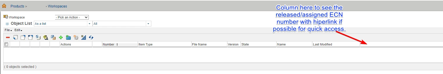 I am working with windchill 12.0.2.15 for releasing using ECN a lot of parts for production and it will be useful if in the search result window and in the active workspace to have a column with the ECN number released or assigned next to the number and name columns.