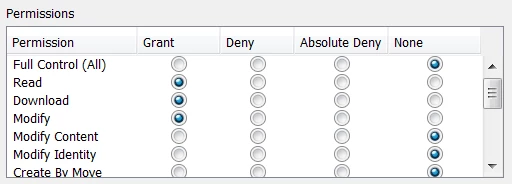 Since the CAD Data Management Lifecycle is set to Basic, all Access Controls (privileges) need to be defined in the Policy Administration/Access Control area.