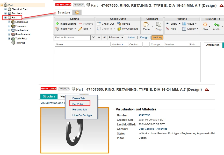 Use Case: I need to customize the order of which tabs are displayed on the Part. In my case, Custom-ActionModels.xml I only have the structure tab, because, when I create a sub-type(like TestPart), I want it to start from a clean layout, nothing else except Structure tab should be there but I do not mention the 'Details' tab in the xml, and create in in UI using customize option, the Structure tab is always coming first. I am able to drag and reorder but that order will not be the same for all users. How can I get the Details tab first, without having it in the xml?