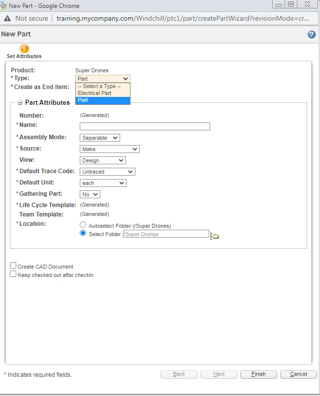 Use Case: for example if i select type as A then it should be take lifecycle template as PART A lifecycle. similarly for B it should take lifecycle template as PART B lifecycle.