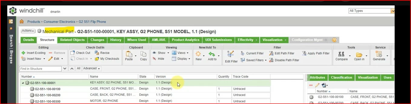 How to differentiate eBOM vs mBOM from Windchill Server UI